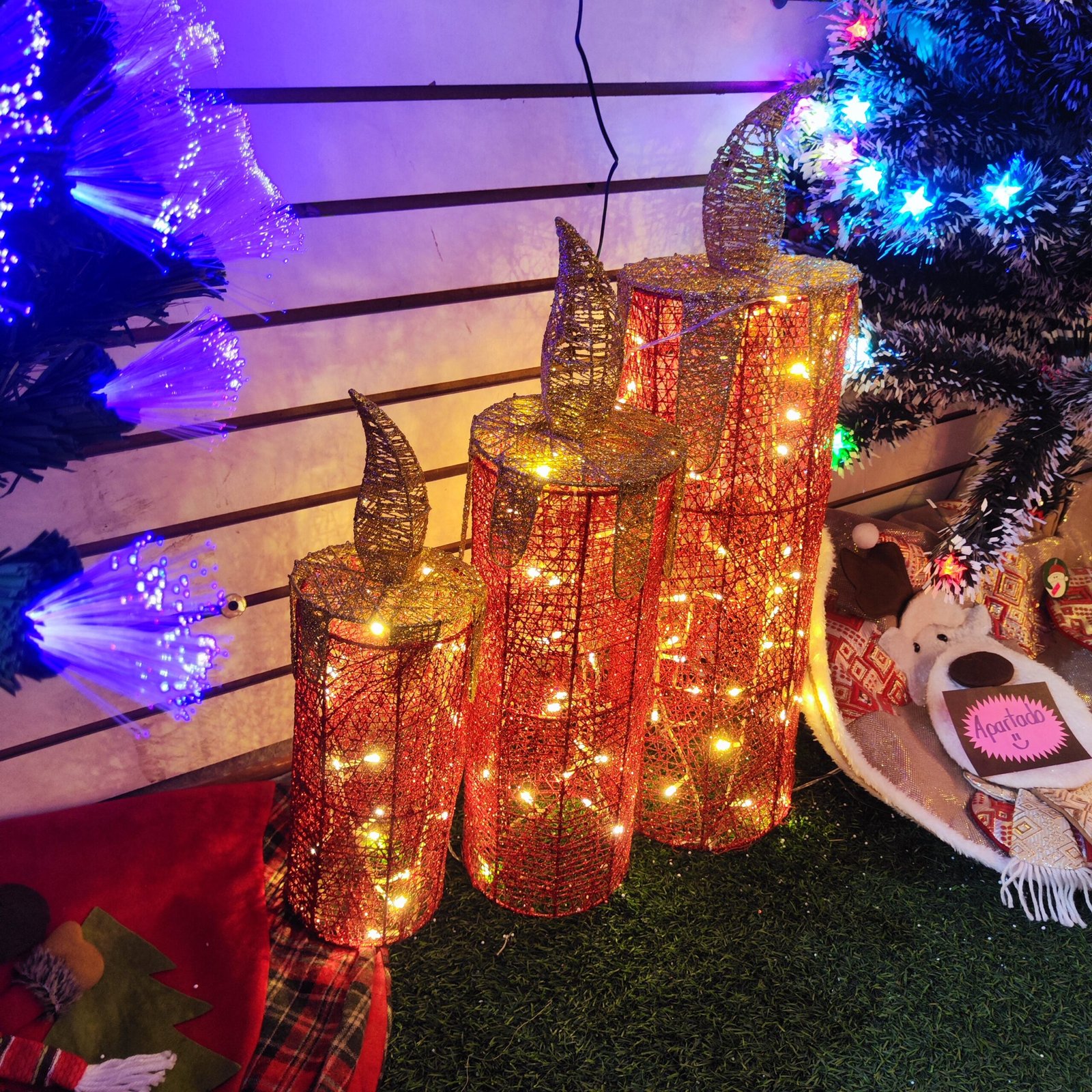 Las luces LED internas distribuidas a lo largo de cada pieza generan un brillo suave ideal para rincones acogedores: junto al árbol, en recibidores, salas, aparadores o escaparates de tienda. Su diseño alto y estilizado luce perfecto en decoraciones clásicas, doradas o modernas.