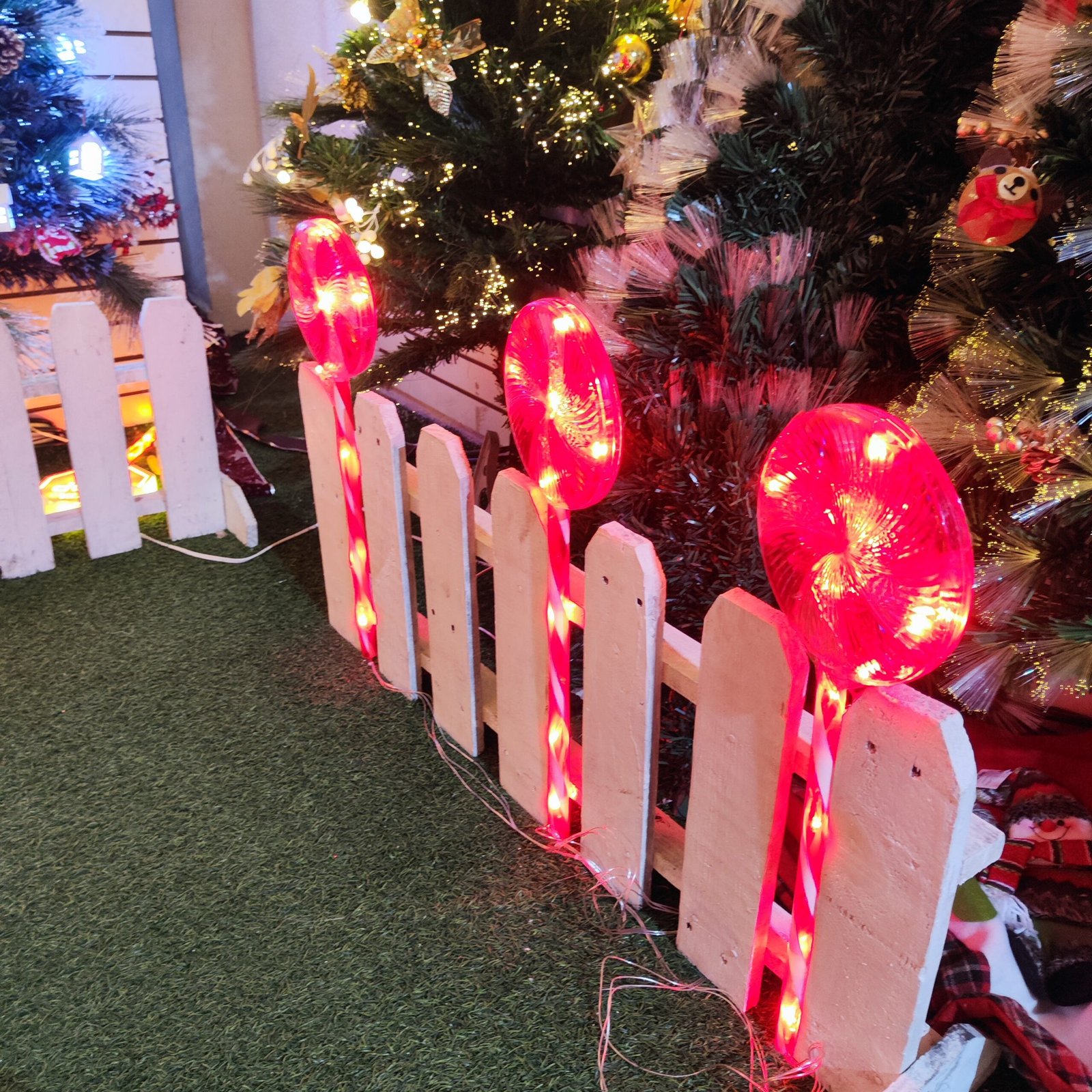 Son ideales para colocar junto a cercas, bordes de jardín, pasillos, entradas de casa o alrededor del árbol, creando un sendero brillante y muy festivo. Combinan perfecto con decoraciones de dulces, casas de jengibre y árboles nevados, dando un toque mágico a tu fachada o interior.